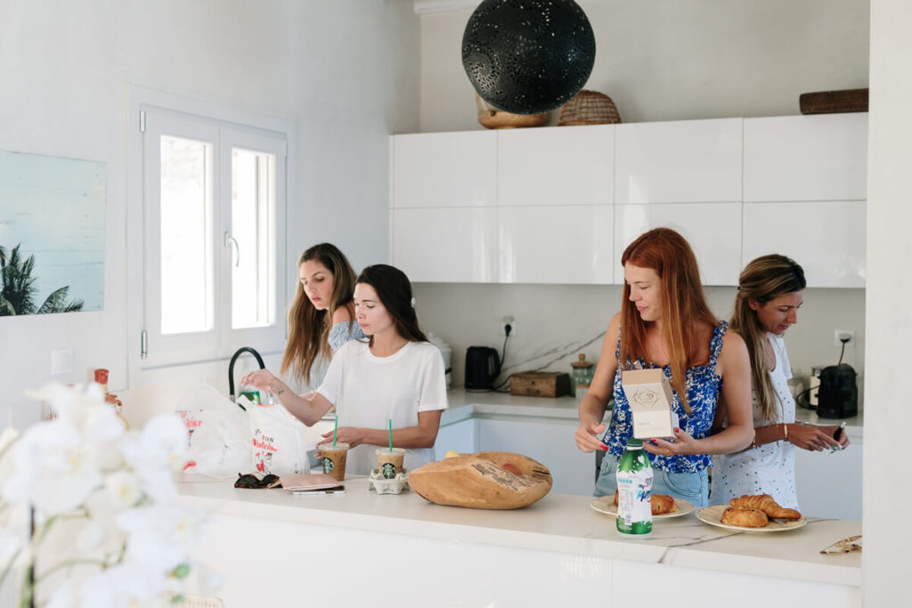 Before her wedding in early September in Kythnos, the future bride, Katerina, gave herself and her best friends a relaxing bachelorette weekend in beautiful Mykonos. In the elegant luxury of Villa Daloli, the girls started their day with a delicious breakfast. Then they started the fun with a private pool party, exclusively for the bride and her team!