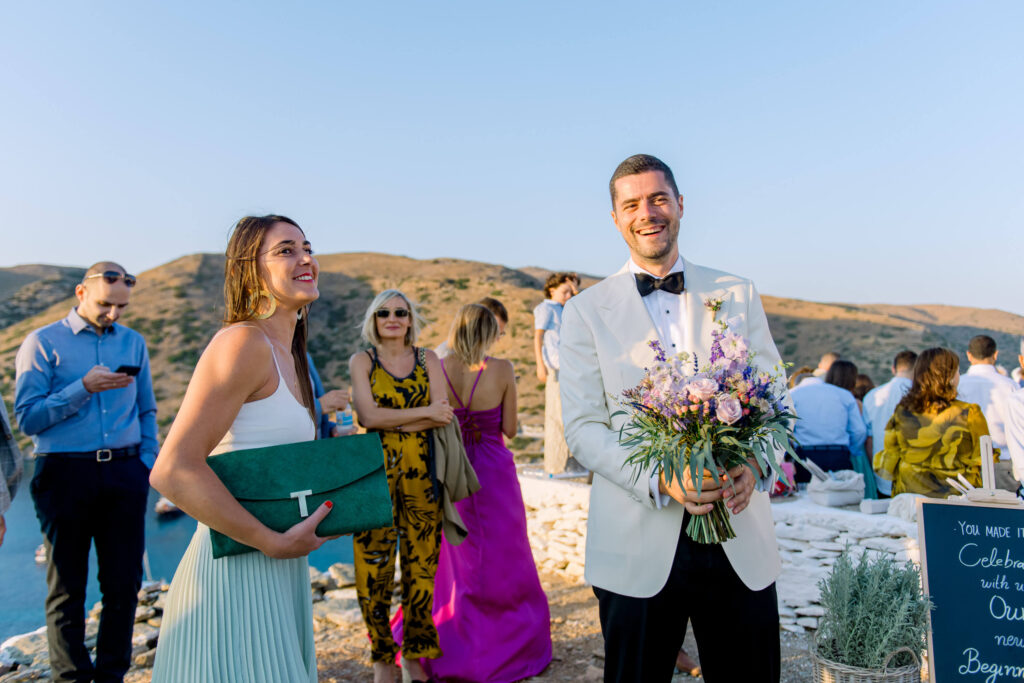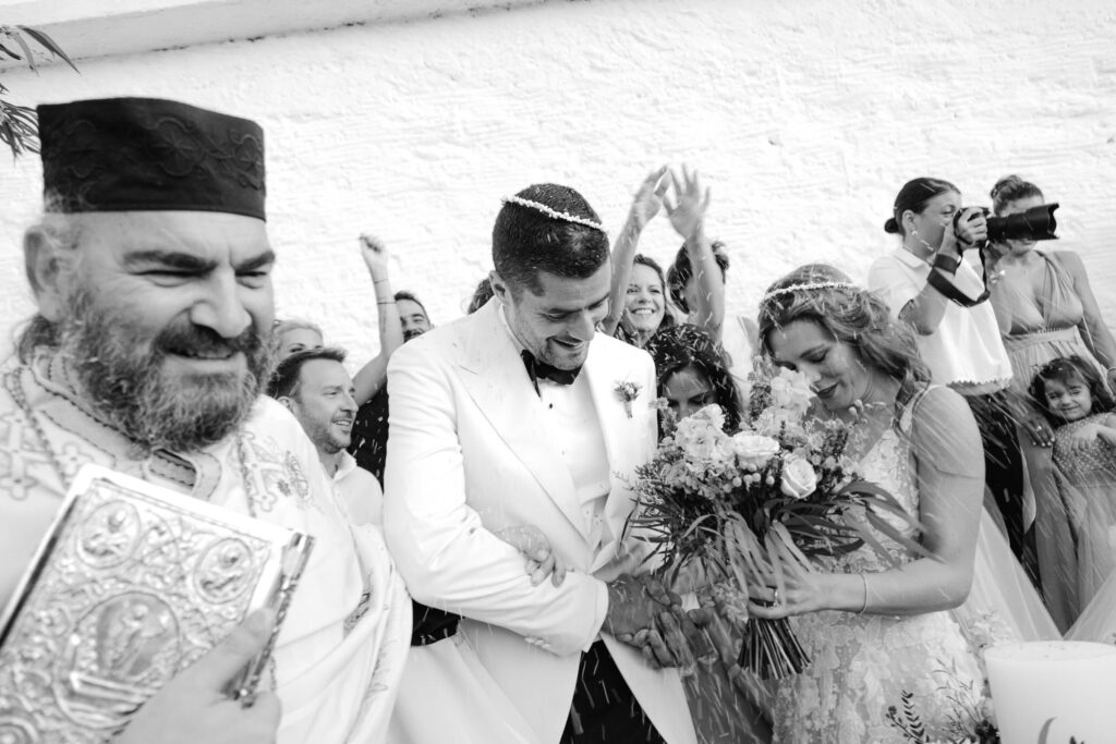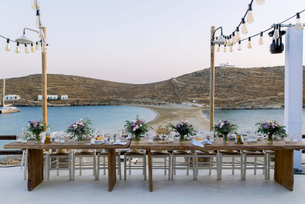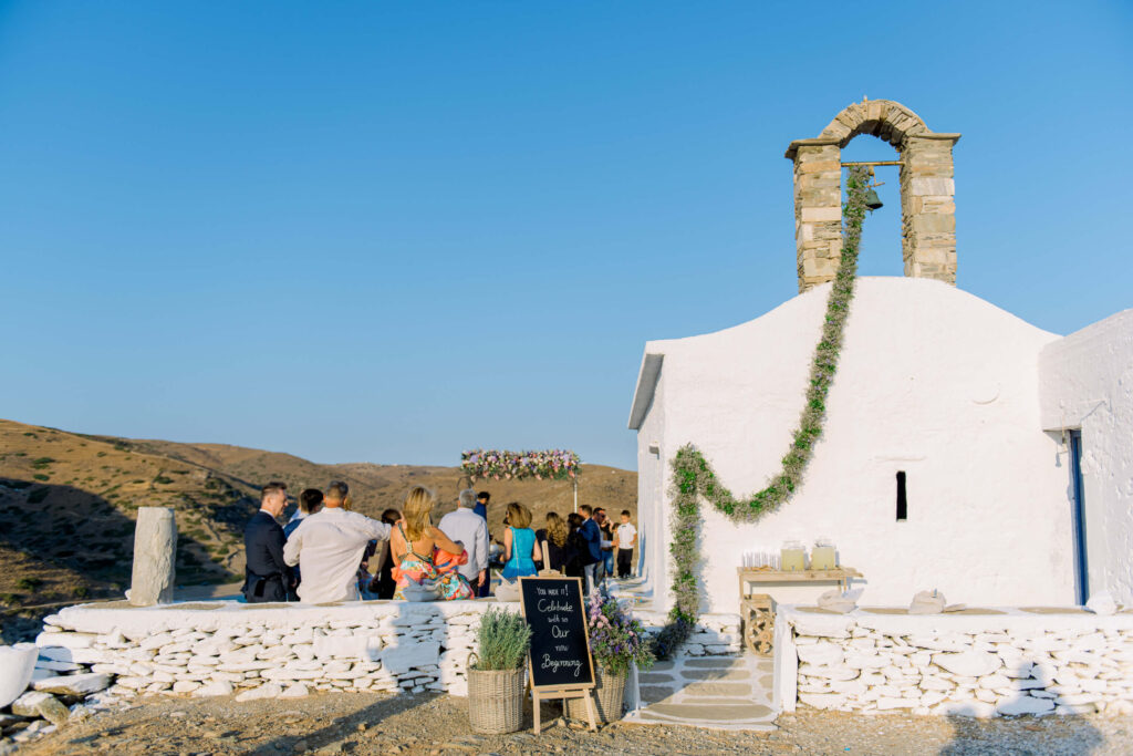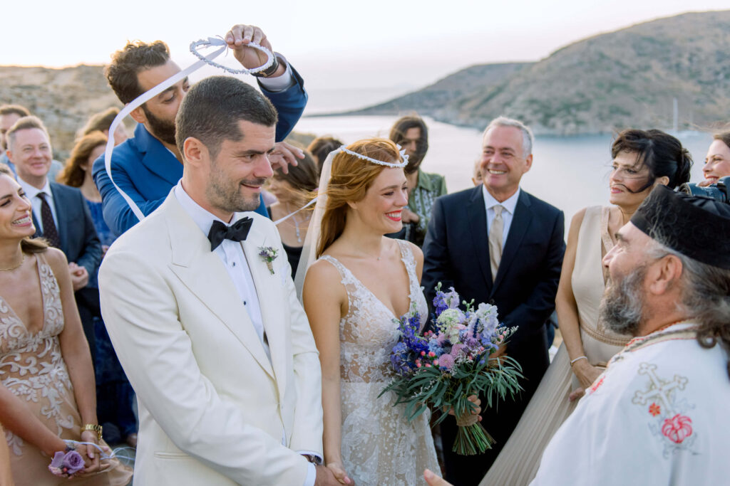 The wedding of Dimitris and Katerina took place in September, on one of the most beautiful and picturesque islands of the Aegean, Kythnos. The ceremony took place in the church of Saint Luke, overlooking the enchanting, turquoise waters of Kolona, the most famous beach of the island.
