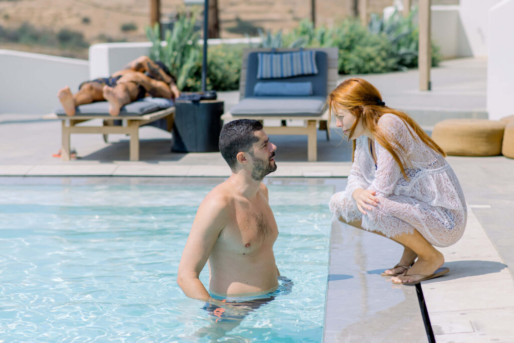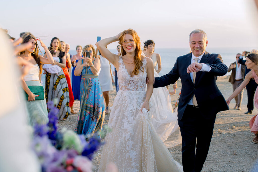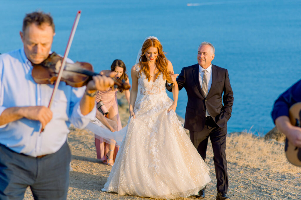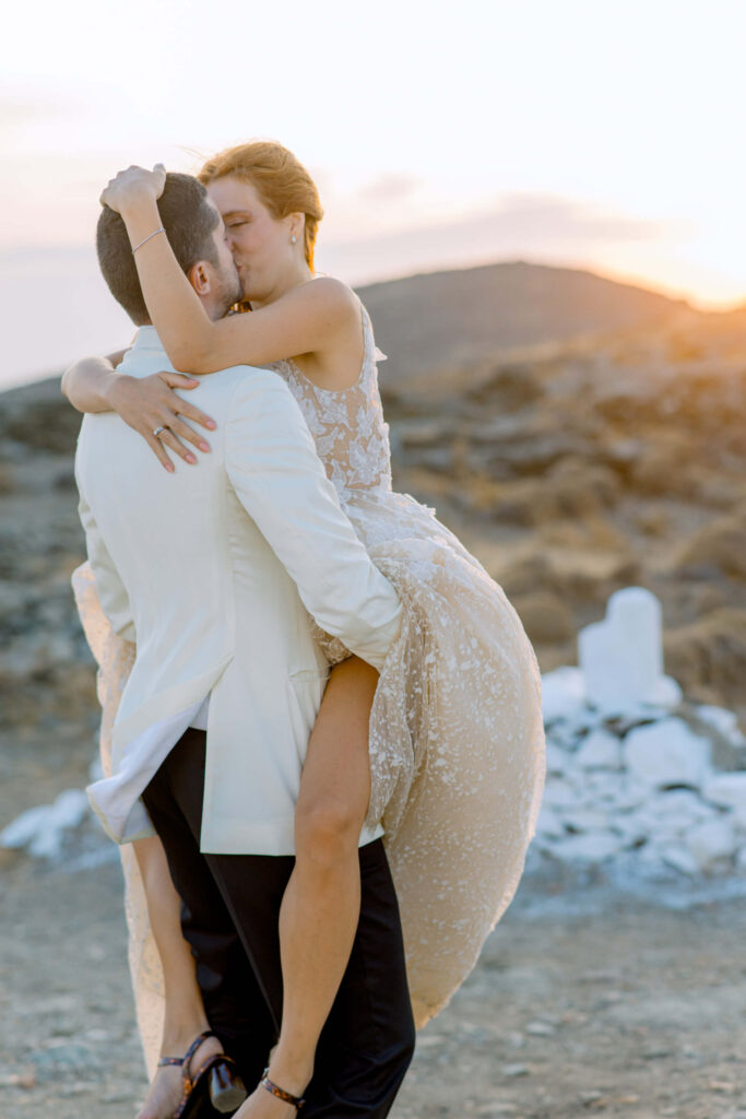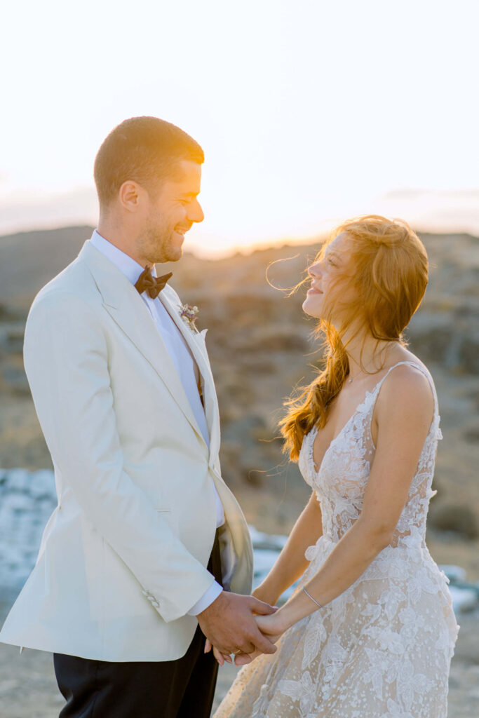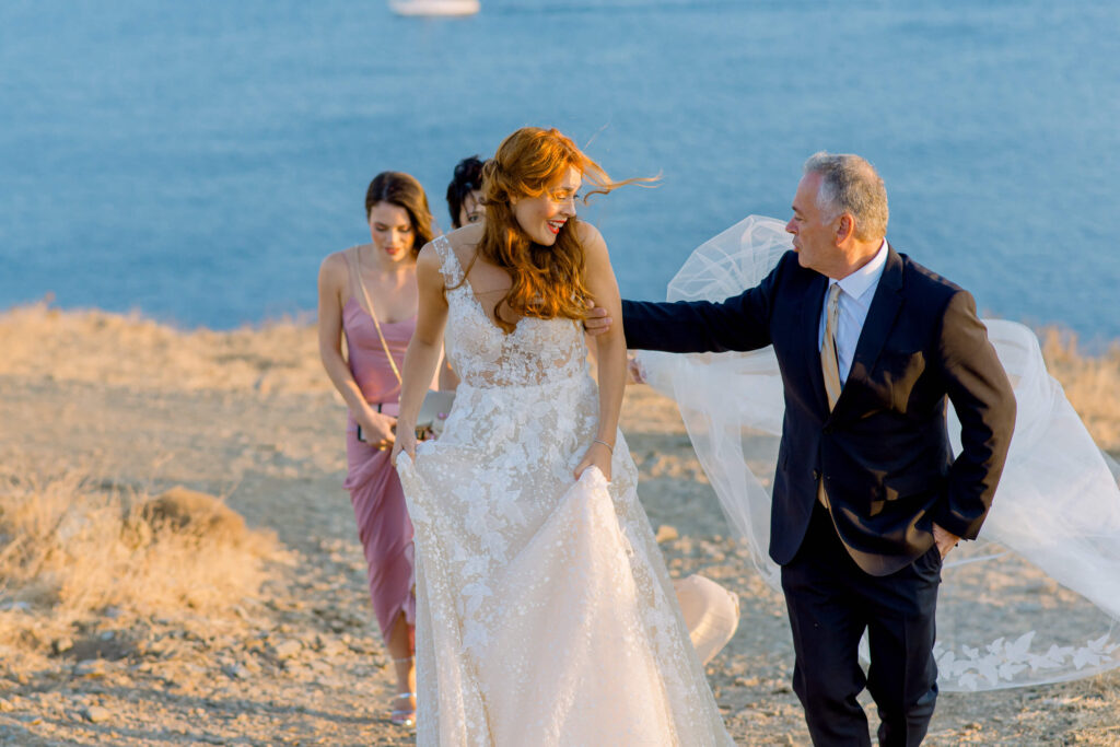 The wedding of Dimitris and Katerina took place in September, on one of the most beautiful and picturesque islands of the Aegean, Kythnos. The ceremony took place in the church of Saint Luke, overlooking the enchanting, turquoise waters of Kolona, the most famous beach of the island.